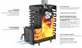 • Глубокая невентилируемая каменка-труба из стали 09Г2С толщиной 4 мм прогревается открытым пламенем для максимального нагрева камней, заложенных в нее и выполняет роль пламегасителя.