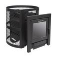 Парилка 14 Финка Панорама – банная дровяная печь окраски "антрацит" с открытой вентилируемой каменкой. Модель с удлиненным топливным каналом устанавливается в парильном отделении, а закладка дров производится из смежного помещения (предбанника, комнаты отдыха).
