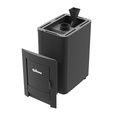 Банная печь с открытой и закрытой каменкой, рассчитана на парную объемом до 18 м3. Корпус выполнен из полированной нержавеющей стали. Для быстрого прогрева парной, конвекционный кожух имеет с 4-х сторон отверстия. Эксплуатация печи упрощается отсутствием внутренних полостей, на которых может оседать сажа. Закрытая каменка из стали толщиной 6 мм содержит большое отверстие с крышкой, через которое закладываются камни. Вода которая подается на более разогретые камни закрытой каменки обеспечивает легкий пар, который "дошлифовывается" в открытой каменке.