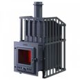 Печь для бани серии Гроза Ураган - расширенный комплект печи в сетке. Максимально приближенный вариант печи для режимов русской парной, имеющий непосредственно закрытую чугунным коробом каменку, дверцу для пара с ручкой из бука, увеличенную до 50см чугунную стартовую трубу.  Печь легко модернизируется до полноценной печи предназначенной для Русской бани путем замены стальной сетки на каменную облицовку без демонтажа дымохода. Модель Гроза Ураган выполнена на базе печей серии Гроза - экономичная модель для частного применения. Основной принцип работы печи сохранён – получение пара с теплоёмкой каменки прямого нагрева. Каменка является сводом топки, нагревается с нижней поверхности снабженной теплосъемными шипами для увеличения контакта с пламенем.Банная печь Гроза 18М Ураган с максимальным объемом парной 18 м3 и диаметром дымохода 115 мм можно купить в интернет-магазине Печи-Онлайн в Калининграде с доставкой по всей России. Чтобы оформить заказ по выгодной цене 94300 руб. с гарантией оставьте заявку или позвоните нам по телефону 8 (800) 505-21-32 . Стоимость монтажа уточняйте у менеджера.