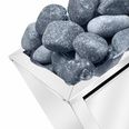 Нагревательным элементом в печке является ТЭН из высококачественной нержавеющей стали. Его диаметр составляет 13 мм. Подобные нагреватели не боятся попадания влаги. Это позволяет устанавливать электрическую каменку как в финские сауны с «сухим» паром, так и в русские традиционные бани с повышенной влажностью, потому что на камни, находящиеся в электропечи можно спокойно лить воду для повышения влажности пара. ТЭН из специальной нержавейки обладает повышенной электробезопасностью и большой тепловой инерцией.