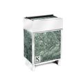 Электрическая каменка в облицовке из змеевика обладает повышенной прочностью и увеличивает полезные свойства банных процедур. Змеевик оказывает положительное способствует повышению настроения и снижает риск вирусных заболеваний. Кроме того, камень нормализует давление и укрепляет иммунитет.