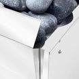 Электрокаменка выдержана в лаконичном современном стиле, который сочетается с любым оформлением интерьера. Корпус выполнен из нержавеющей стали, не требующей уход.