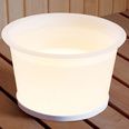 Шайка с подсветкой от Harvia - это современный и стильный способ доставки воды и света в парилку сауны. Основание шайки можен быть установлено на поверхность полка, или же шайка может быть встроена в полок. Светодиодный светильник в основании равномерно освещает шайку, а шайка также освещает окрестности - она изготовлена из оптического пластика с оптимальным рассеянием света. Шайку легко извлечь из основания, чтобы наполнить водой или очистить. Так как основание - это отдельный модуль, то электрические компоненты источника света защищены от воды.