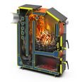 В качестве топлива может использоваться уголь, дрова, топливные брикеты. В конструкции котла также предусмотрена возможность установки пеллетной или газовой горелок.