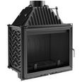 Каминная топка Kratki Amelia изготовлена из литого чугуна, толщиной 8 мм, внешние стенки усилены ребрами, которые увеличивают теплонакопление топки и вместе с тем снимают излишки термической нагрузки на стенки топки. Стыки между стеклом и чугуном, а также между дверцей и топочной камерой уплотнены графитовым шнуром. Первичная подача воздуха в топку направляется ручкой зольника. Поворотная шиберная заслонка управляет тягой в дымоходе. Встроенная система обдува стекла препятствует оседанию сажи.