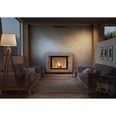 В призматическую трехгранную распашную дверцу вставлено угловое стекло из жаропрочной стеклокерамики, через которое можно любоваться объемной игрой живого пламени и следить за сгоранием дров.