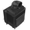 Первичная подача воздуха в топку направляется ручкой зольника. Поворотная шиберная заслонка управляет тягой в дымоходе. Регулятор вторичного дожига через отверстия на задней стенке подает кислород в верхнюю часть топочной камеры, из-за чего сгорает большая часть угарного газа и уменьшаются вредные выбросы в атмосферу. Встроенная система обдува стекла препятствует оседанию сажи. Стыки между стеклом и чугуном, а также между дверцей и топочной камерой уплотнены графитовым шнуром.