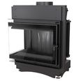 Г-образное стекло из жаропрочной стеклокерамики вставлено в угловую распашную дверцу поверх узкой рамки слева, что увеличивает обзор на игру пламени из-за отсутствия чугунной стойки. Каминная топка предназначена для установки в колонну, во внешний выступ перегородки или на специальный подиум.