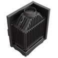Каминная топка Kratki Maja/L/BS/Deco (угловое стекло слева) изготовлена из литого чугуна, толщиной 8 мм, внешние стенки усилены ребрами, которые увеличивают теплонакопление топки и вместе с тем снимают излишки термической нагрузки на стенки топки. Дымосборник сделан в форме высокого конуса для накапливания газов в его верхней части, из-за этого у топки КПД меньше, но в помещение попадает на 80% меньше дыма, когда открывается дверца