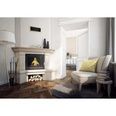 В призматическую трехгранную распашную дверцу вставлено угловое стекло из жаропрочной стеклокерамики, через которое можно любоваться объемной игрой живого пламени и следить за сгоранием дров.