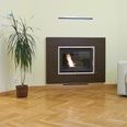В широкую панорамную распашную дверцу вставлено двойное стекло из жаропрочной стеклокерамики Robax® поверх узкой рамки, что увеличивает обзор на огонь и сгорающие поленья.