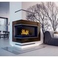 В широкую распашную угловую дверцу слева вставлено Г-образное стекло из жаропрочной стеклокерамики Robax®, которое увеличивает обзор на игру пламени из-за отсутствия чугунной стойки. Каминная топка предназначена для установки в колонну, во внешний выступ перегородки или на специальный подиум.