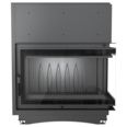 Каминная топка Kratki Oliwia/P/BS/Deco (угловое стекло справа) изготовлена из литого чугуна, толщиной 8 мм, внешние стенки усилены ребрами, которые увеличивают теплонакопление топки и вместе с тем снимают излишки термической нагрузки на стенки топки. Первичная подача воздуха в топку направляется ручкой зольника. Поворотная шиберная заслонка управляет тягой в дымоходе. Регулятор вторичного дожига подает кислород в верхнюю часть топочной камеры, из-за чего сгорает большая часть угарного газа и уменьшаются вредные выбросы в атмосферу. Высокий дымосборник в форме конуса накапливает газы в верхней части для вторичного сгорания. Стыки между стеклом и чугуном, а также между дверцей и топочной камерой уплотнены графитовым шнуром. Встроенная система обдува стекла препятствует оседанию сажи.