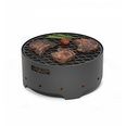 Мангал Дачник, изготовленный из конструкционной стали толщиной 2 мм, имеет круглую форму. Он предназначен для совместного использования с решеткой гриль диаметром 45 см. Дно размещено на расстоянии 168 мм от верхнего края. Усилитель конструкции стенки, стальной пруток толщиной 10 мм, расположен по всему периметру мангала. Одновременно с предотвращением деформации стенок мангала от нагревания, пруток выполняет функцию упора для решётки. Верхний край прутка ниже края стенки на 20 мм, что позволяет разместить решётку вровень со стенками. Это значительно упрощает готовку, сдвигание и переворачивание крупных кусков. Поступление воздуха для горения обеспечивают 12 круглых отверстий в нижней части мангала. Боковые отверстия в стенках выполняют функцию ручек, позволяют легко и удобно перемещать мангал по дачному участку. Решётка Стейк из чугуна пригодна для использования в пищевой промышленности, что позволяет готовить на мангале мясо, рыбу, овощи, морепродукты. За счёт хорошего нагрева и длительного удержания энергии чугун обеспечивает качественный прогрев продуктов, красивый внешний вид и быструю готовку.