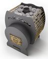 Дровяная печь для бани серии Сабантуй Каменка предназначена для отопления парильного помещения бани, получения пара и нагрева воды. Топка и каменка данной модели выполнены из жаростойкой стали. Топку окружает кованная сетка, которая образует каменку. В ней может поместиться до 200 кг камней. Максимальная площадь отапливаемого помещения 24 м3. Труба изготовлена из стали марки 09Г2С. Печь топится сухими дровами. Дверца из чугуна. К печи подключается дымоход диаметром 115 мм.