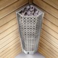 Электрокаменка «Дельта» ЭКМ-9,0 — стильная, функциональная и современная электрокаменка со встроенным пультом управления. Угловое исполнение печи позволит сэкономить свободное место в парильном помещение. Обладая компактными размерами, каменка вмещает большое количество камней, что способствует равномерному распределению и сохранению тепла в парной. Для удобства наполнения электропечи камнями, корпус электрокаменки разделен на две части.